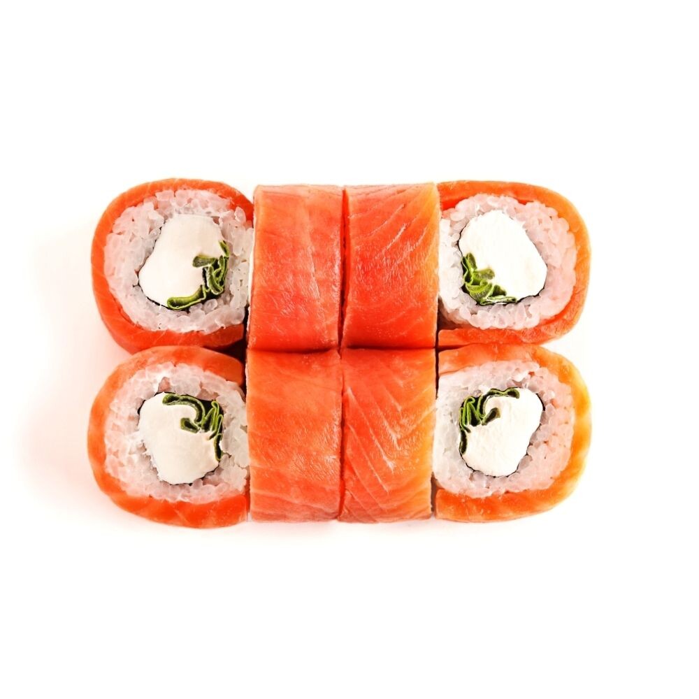 Рис, уксус рисовый, водоросли нори, сахар, филе лосося слабосолёное, сыр творожный, лук зелёный. Включено: Соевый соус 1 порция, палочки для суши 1 комплект.*Блюда готовятся на предприятии где используются морепродукты и их переработки, ракообразные, кунжут, лактоза, глютен. В рыбе и курице могут быть незначительное количество частиц костей.