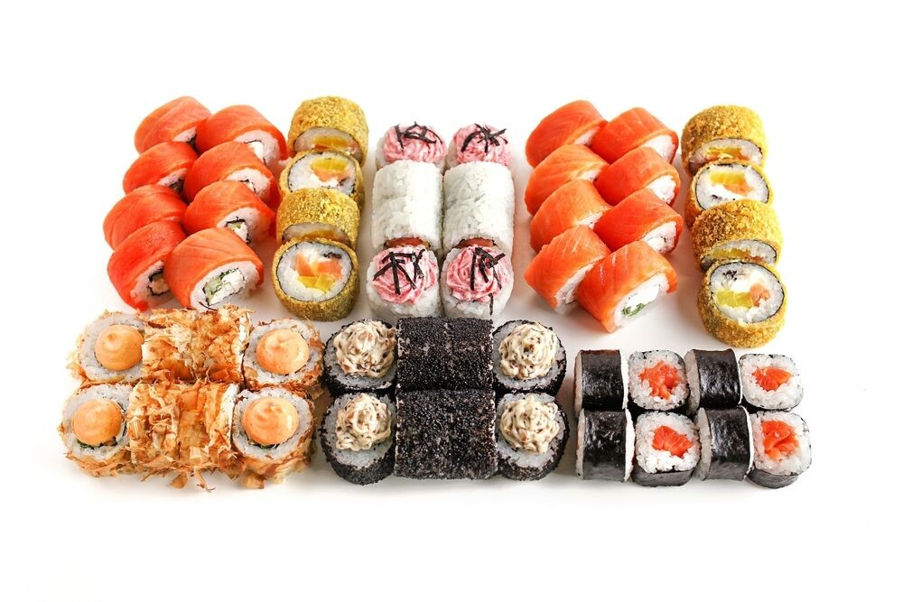 Филадельфия с огурцом, филадельфия с луком, темпура с лососем и дайконом, ролл лава с лососем, ролл сяке маки, ролл скин маки, ролл шиитаки бум. К сету включено: Соевый соус 3 порции, палочки для суши 3 комплекта.*Блюда готовятся на предприятии где используются морепродукты и их переработки, ракообразные, кунжут, лактоза, глютен. В рыбе и курице могут быть незначительное количество частиц костей.
